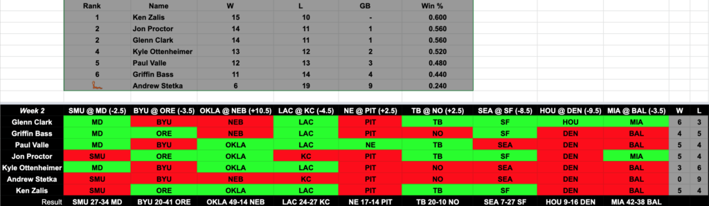 And here’s a look at our updated GCR Picks Contest standings with weekend’s results as well…Andrew Stetka did the unthinkable, an 0-for-9 week: