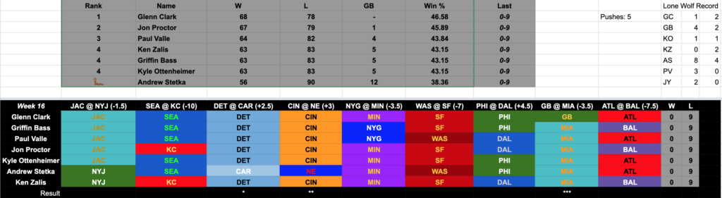 During the 2022 football season on Glenn Clark Radio, we continue the tradition of being held accountable for our flawed opinions. Glenn, Griffin, Paul Valle III, Kyle Oppenheimer, Jon Proctor, Andrew Stetka, and Ken Zalis, choose the nine most interesting football games that week, and make their picks against the spread. The loser at season’s end has to eat a worm burger while dressed as Dennis Rodman in a wedding dress, including having your hair dyed…if you don’t have hair to dye, dye your beard (*hem* Stetka), and will have to both execute “The Worm” (Scotty 2 Hotty) but also take a Rikishi style stinkface.