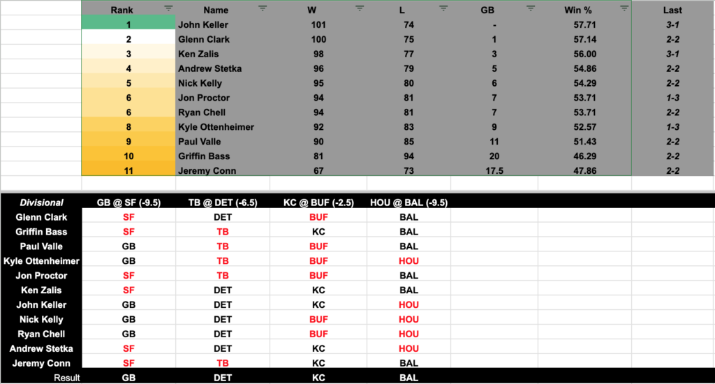 Also Monday on GCR, Glenn and Griffin recapped the Divisional Round weekend in the GCR Picks Contest as we saw some shakeup at the top of the table with John in Little Rock jumping out to a one-game lead… You can listen as we recap the weekend and dish out our Ass Pats right here: