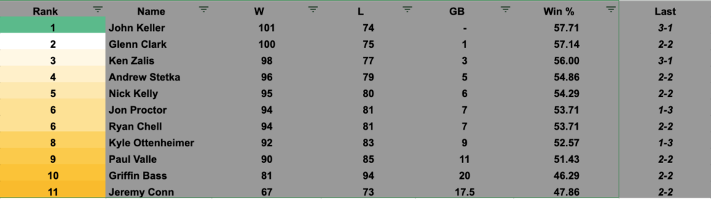 During the 2023 football season on Glenn Clark Radio, we will again be continuing the tradition of being held accountable for our flawed opinions. Glenn, Griffin Bass, Paul Valle III, Kyle Ottenheimer, Jon Proctor, Andrew Stetka, Ken Zalis and three newcomers–Nick Kelly, John Keller and Ryan Chell–choose the nine most interesting games of the week’s football slate and make their picks against the spread. Plus, the addition of Jeremy Conn, who is throwing his name in the hat as of last week, with the belief that he can catch our current losers and avoid being the ultimate loser.