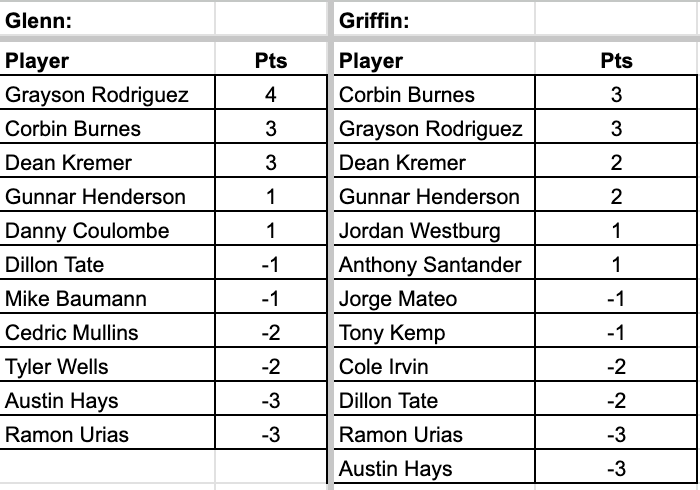 Glenn and Griffin continued their new segment for the 2024 baseball season Monday on GCR with ‘Three Up and Three Down’ where we rank the best and worst Orioles performers of the week, much like how we do with Pats on the Ass and Slaps to the Helmet during football season after Ravens games. The guys will each name three players, three trending up, three trending down, based on how they did for that week specifically.