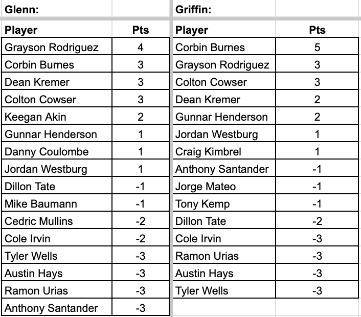 Glenn and Griffin continued their new segment for the 2024 baseball season Monday on GCR with ‘Three Up and Three Down’ where we rank the best and worst Orioles performers of the week, much like how we do with Pats on the Ass and Slaps to the Helmet during football season after Ravens games. The guys will each name three players, three trending up, three trending down, based on how they did for that week specifically.