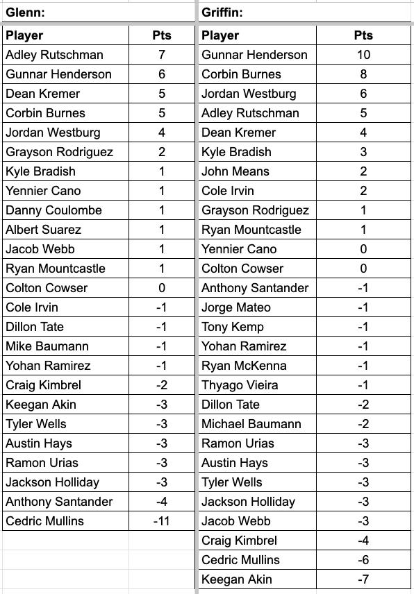 Glenn and Griffin continue our Monday tradition for the 2024 baseball season Monday on GCR with ‘Three Up and Three Down’ where we rank the best and worst Orioles performers of the week, much like how we do with Pats on the Ass and Slaps to the Helmet during football season after Ravens games. The guys will each name three players, three trending up, three trending down, based on how they did for that week specifically–the Orioles went four up and two down on the week, making it hard to pick just three for the up and limited options for down, but one clear-cut anti-man of the week