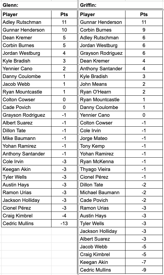 Glenn and Griffin continue our Monday tradition for the 2024 baseball season Monday on GCR with ‘Three Up and Three Down’ where we rank the best and worst Orioles performers of the week, much like how we do with Pats on the Ass and Slaps to the Helmet during football season after Ravens games. The guys will each name three players, three trending up, three trending down, based on how they did for that week specifically–a disappointing week for the birds, going 2-4, who appear to be a little burned out, excuses begone, the bats were rewarded all the praise this week and pitching clearly struggled.