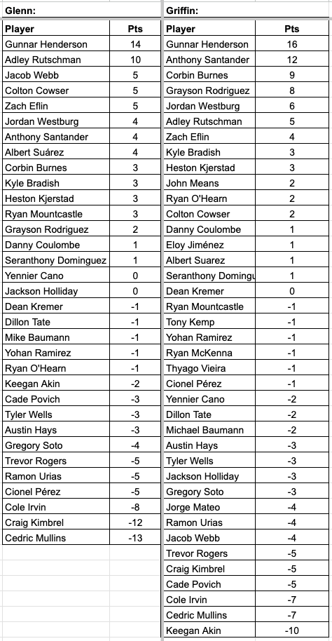Glenn and Griffin continue our Monday tradition for the 2024 baseball season Monday on GCR with ‘Three Up and Three Down’ where we rank the best and worst Orioles performers of the week, much like how we do with Pats on the Ass and Slaps to the Helmet during football season after Ravens games. The guys will each name three players, three trending up, three trending down, based on how they did for that week specifically–this week the birds went three up, three down themselves and pitching once again dominates the rankings.