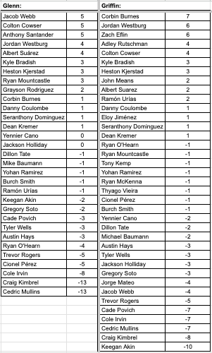 Gunnar avoids the list, driving in a couple yesterday and actually contributing to run production. But Adley, brutal stuff this week, hard to even believe that he managed to get on-base five times.