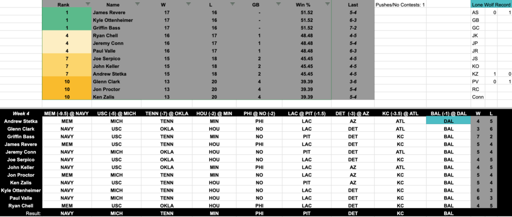 The guys also recapped the week in ‘Picks’ as well, here is the updated table: