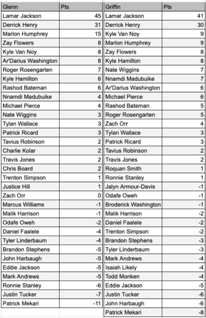 Yes, Lamar Jackson has to be on the list because of the two turnovers. Unquestionably. But we also can’t pretend that’s the entire story of his night. He played well enough to win despite them. But they were significant so this is the spot for him.