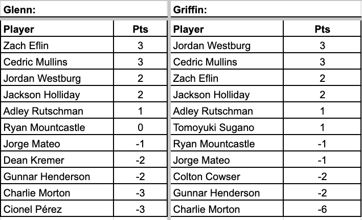 Glenn and Griffin are bringing back our tradition we started last season for the 2025 baseball season Monday on GCR with ‘Three Up and Three Down’ where we rank the best and worst Orioles performers of the week, much like how we do with Pats on the Ass and Slaps to the Helmet during football season after Ravens games. The guys will each name three players, three trending up, three trending down, based on how they did for that week specifically.