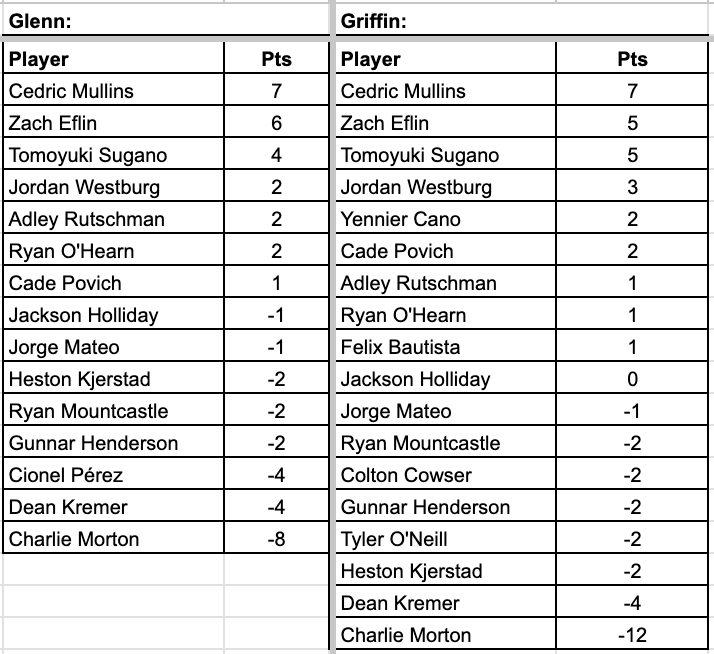 Glenn and Griffin are bringing back our tradition we started last year for this 2025 baseball season Mondays on GCR with ‘Three Up and Three Down’ where we rank the best and worst Orioles performers of the week, much like how we do with Pats on the Ass and Slaps to the Helmet during football season after Ravens games. The guys will each name three players, three trending up, three trending down, based on how they did for that week specifically.