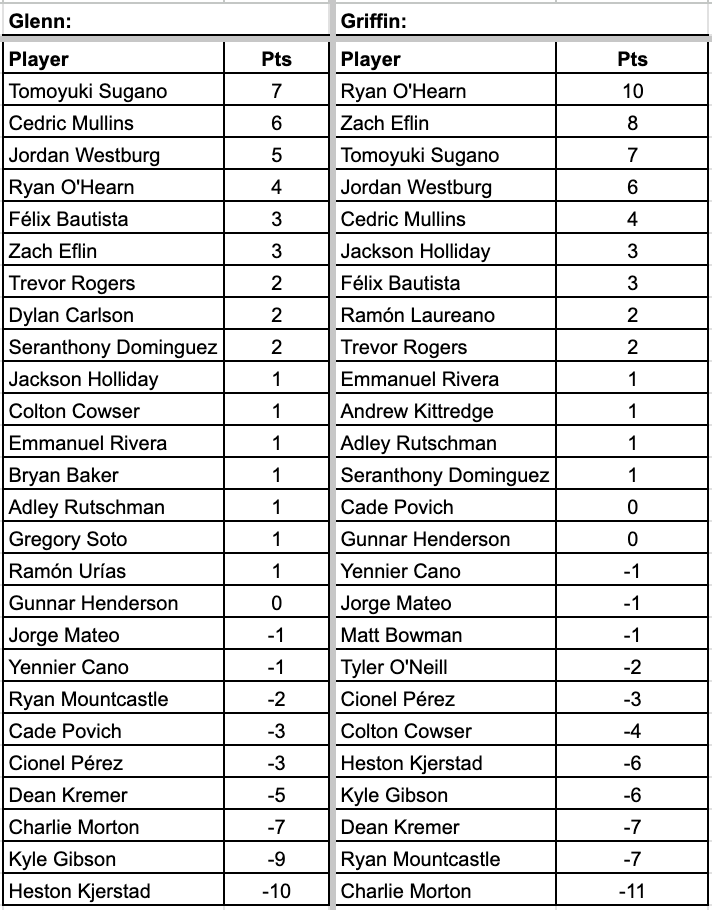 Welcome back. Westburg OPS-ed 1.251 for the week with three home runs and made some outstanding defensive plays in the process.