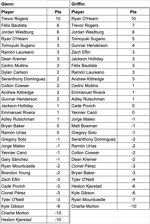 Glenn and Griffin are bringing back our tradition we started last year for this 2025 baseball season Mondays on GCR with ‘Three Up and Three Down’ where we rank the best and worst Orioles performers of the week, much like how we do with Pats on the Ass and Slaps to the Helmet during football season after Ravens games. The guys will each name three players, three trending up, three trending down, based on how they did for that week specifically.