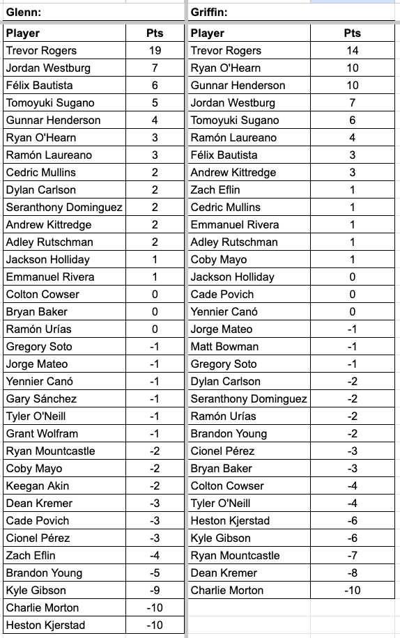 In a week where it was difficult to find a third player, Rutschman did get on base nine times in 23 plate appearances and yeah, that’s where we’re at. He did have the big blow in one of the two games they actually won as well. So there’s that.