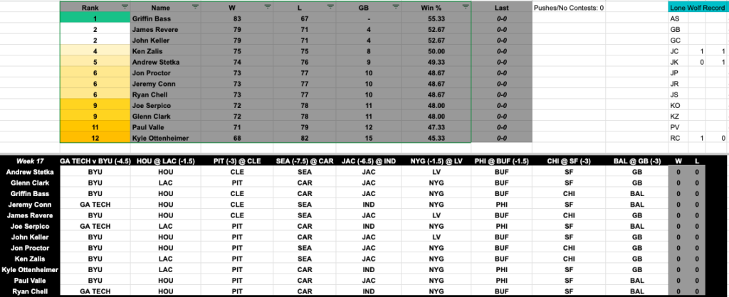 Merry Christmas to all who celebrate, so that meant no GCR nor picks segments, but enjoy admiring Griffin sitting all alone atop the leaderboard: