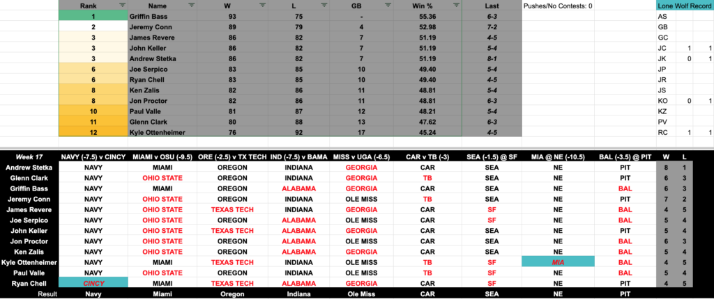 Here are the updated GCR Picks Contest standings, Griffin remains firmly at the top: